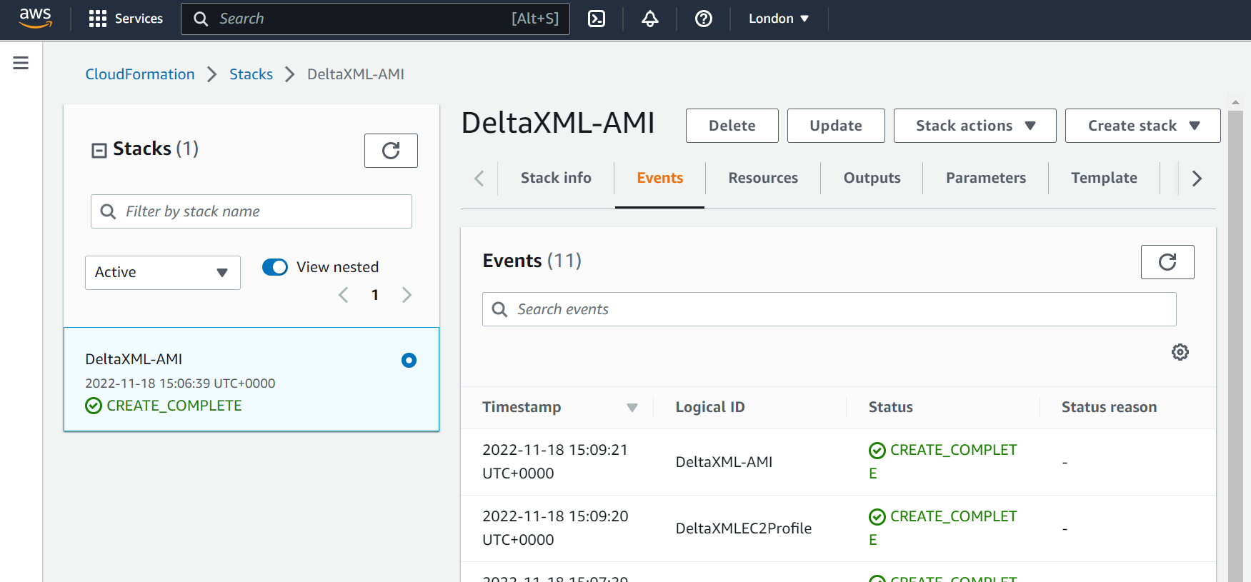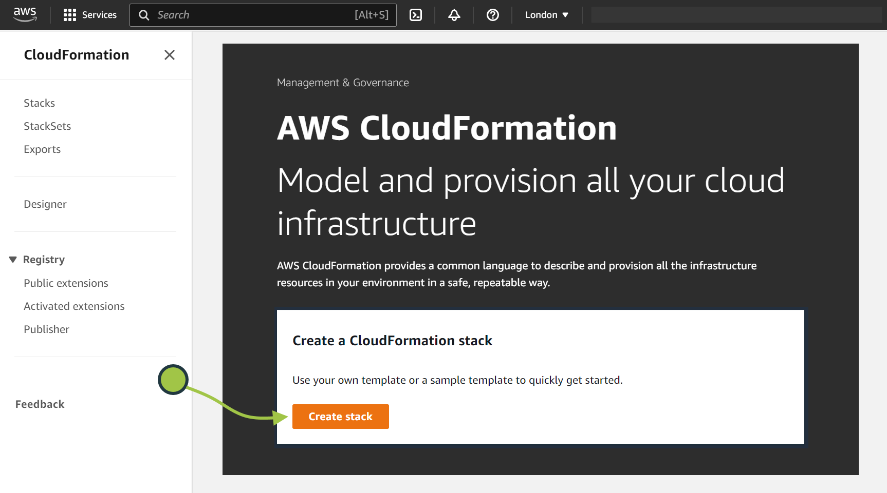 Click on Create Stack