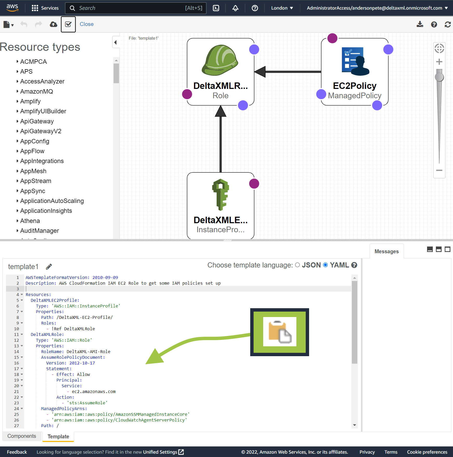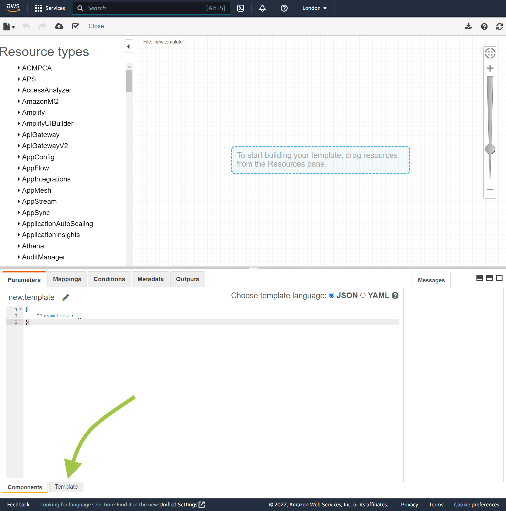 Paste the CloudFormation script from above into the template area