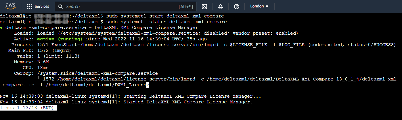 sudo systemctl start deltaxml-xml-compare