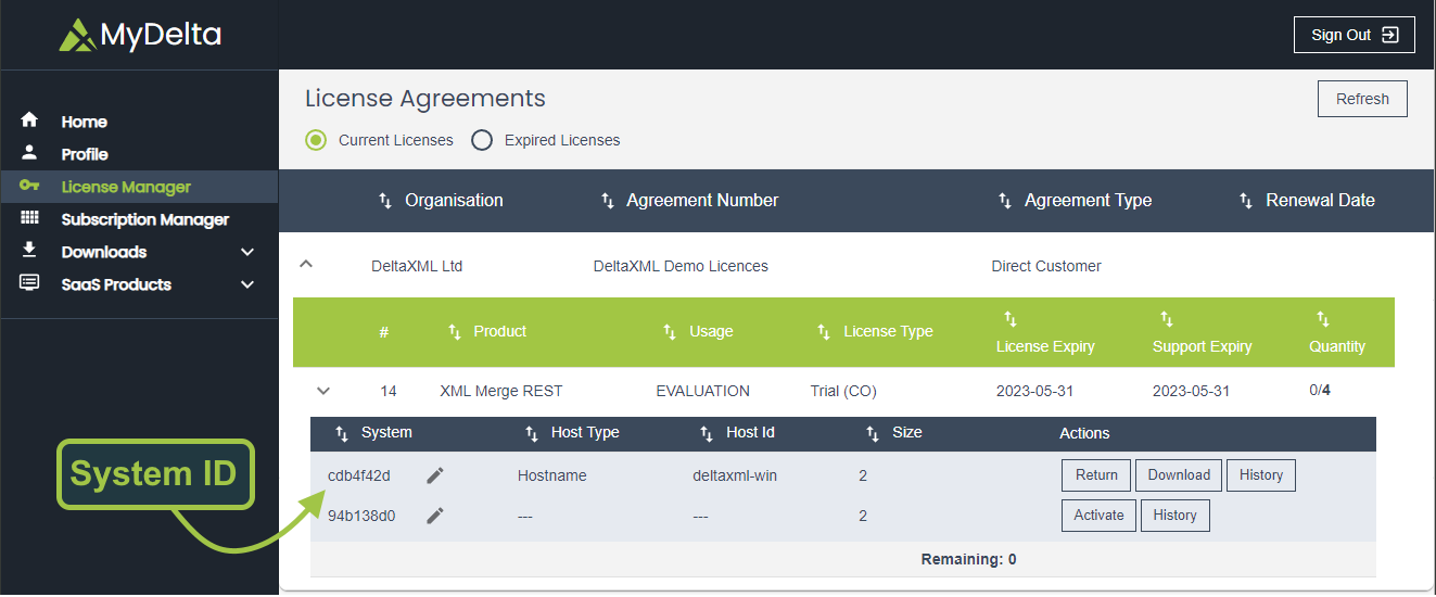 NOTE: The system ID is taken from MyDelta