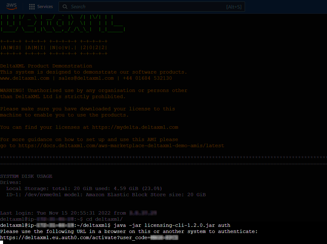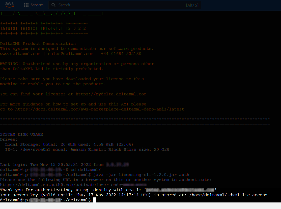 Back on the EC2 instance, the command line will progress and download a token giving the instance access to the license server.