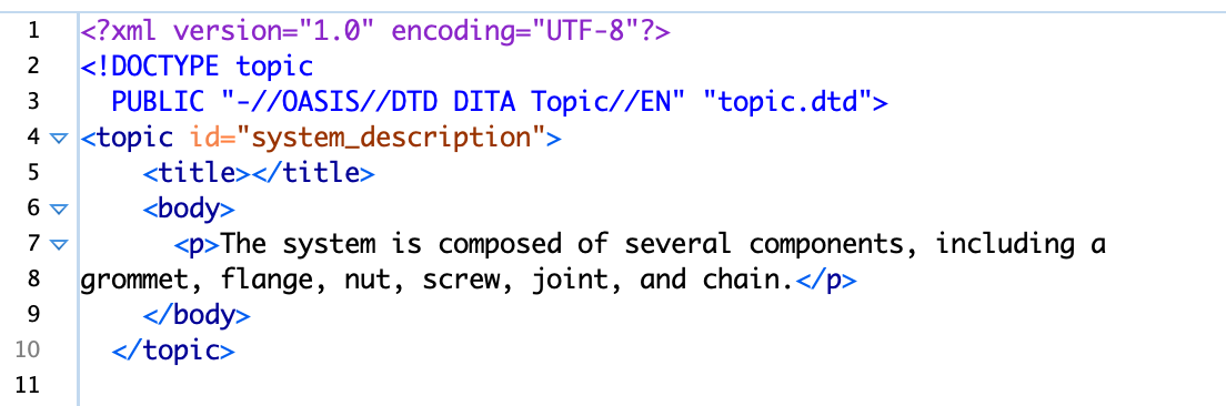 Suppose the process failed to convert the first heading line “System Description“, and output a DITA root map and DITA file that looked like this: