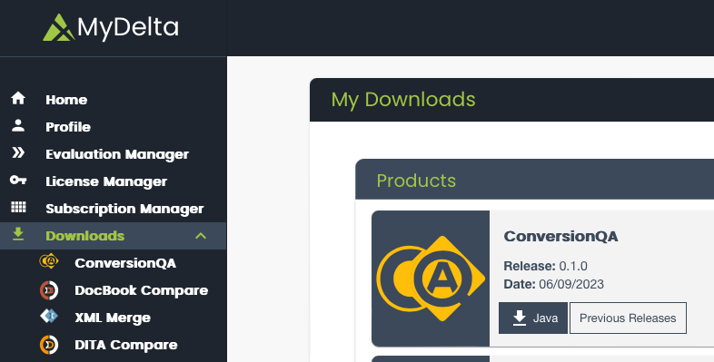 Login to DeltaXML’s account management site MyDelta: http://mydelta.deltaxml.com/