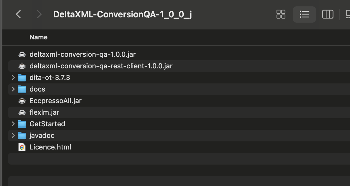 Unzip the zip you just downloaded and then place the license file (deltaxml-conversion-qa.lic) you previously downloaded in this directory: