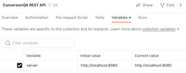 The collection comes with various example requests, that have been set up with collection variables, the main one being server which by default is pointing to localhost and will need to be changed if running on-premise.