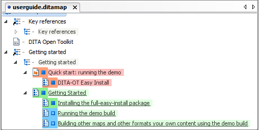 For this comparison type, the output is a DITA map file with differences marked according to the chosen Output Format.