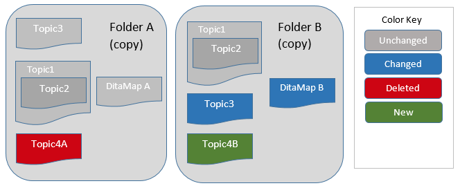 Each topic in the Folder B copy shows any differences to the corresponding Folder A version