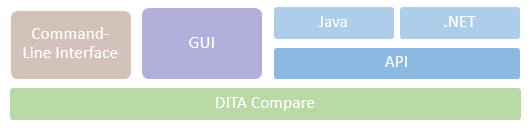 A GUI application is also provided (except in the .NET version), but this is intended to provide a simple way to show the potential of DITA Compare's features, rather than as an every-day productivity tool.
