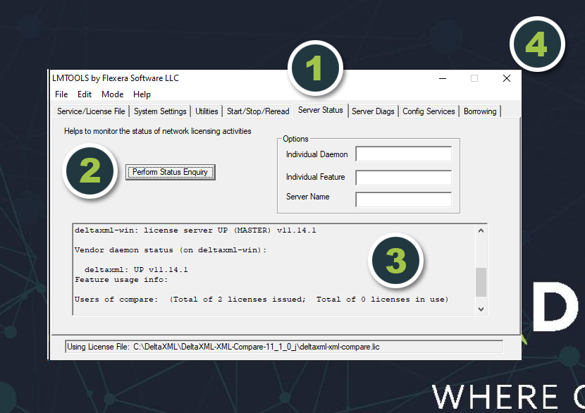 Click 'Perform Status Enquiry' - this will provide a readout of the license server's current status.