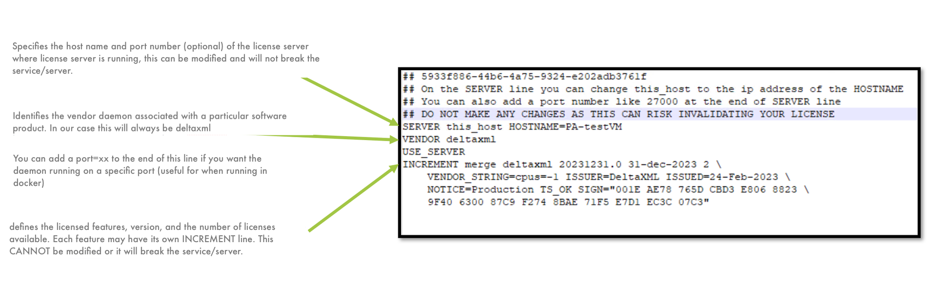 TEXT$ java -jar deltaxml-10.0.3.jar licenseCODE$ java -jar deltaxml-docbook.jar licenseThis will display the version of the product and the license details. If you observe the license server logs you will also see a checkout followed by an immediate checkin corresponding to the license report.