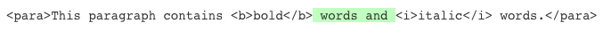 It is important to note that PCDATA whitespace nodes also qualify as mixed content whitespace. Because it is not inter-element whitespace, it may need to be treated as significant. The following example highlights space characters (shown as _ characters) that appear in PCDATA-only content: