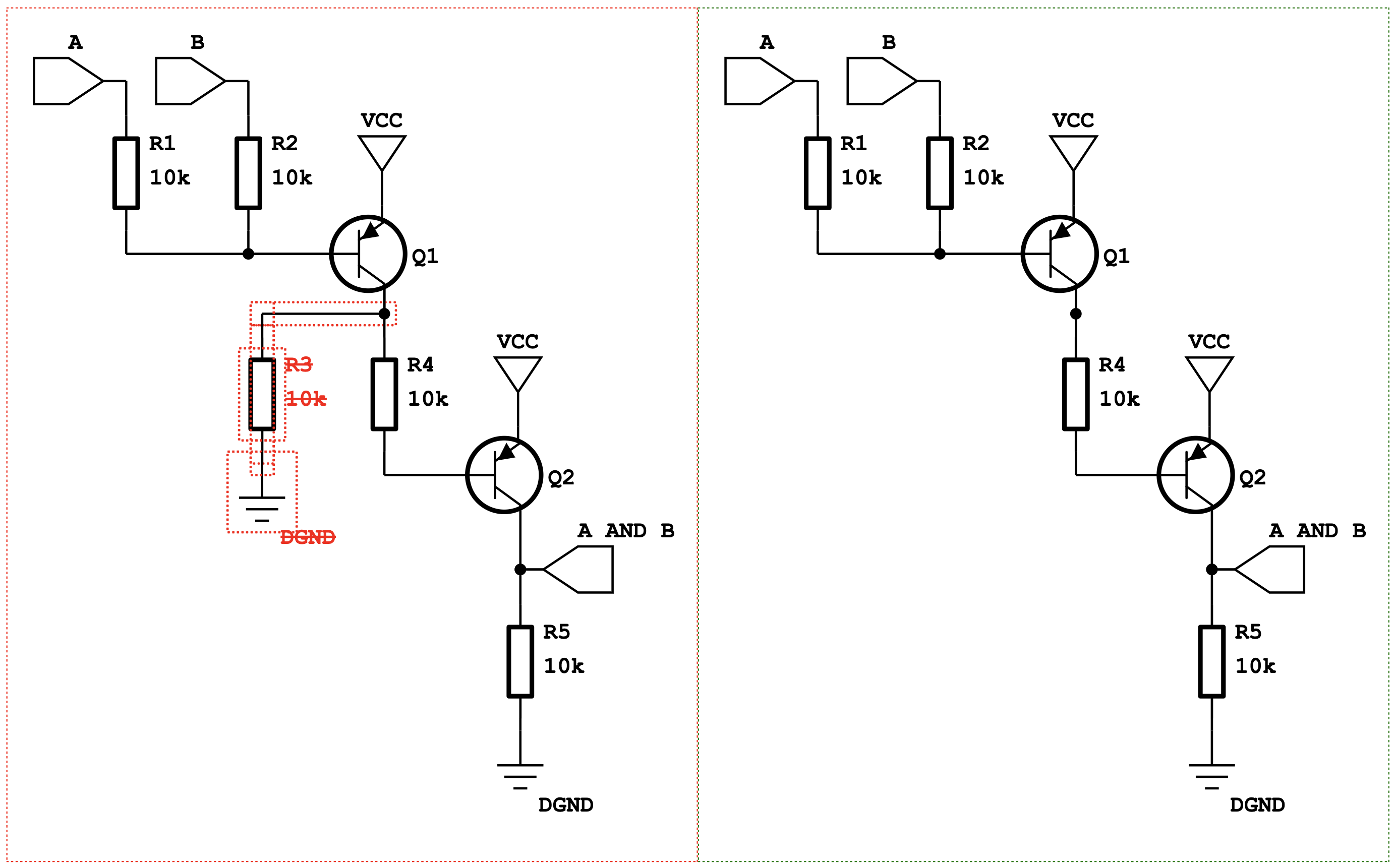 Detailed adjacent SVG comparison is better suited for SVGs with less change. Change in the SVG is represented with adjacent A and B SVG inputs in addition to highlighted change; individual change is highlighted with red and green (unless specified otherwise, see Example 4) bounding boxes, which contain a deltaxml:svgBoundingBoxId to distinguish added <rect> elements from original elements.