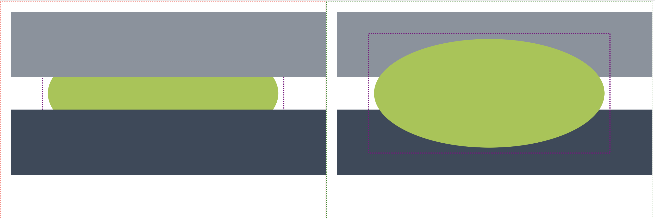 Adjacent SVG comparison is suited for SVG images with significant changes, the result showing the A and B SVG inputs adjacent to one another. A & B inputs are highlighted by default with red and green dashed outlines respectively, however these colours can be user defined. Adjacent results for SVG comparisons do not include highlighted change, ensuring correctly rendered SVGs and a side by side display of the SVG images to view difference.