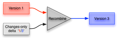 Any version can then easily be recreated by using the recombiner with the stored version and the relevant changes-only delta.