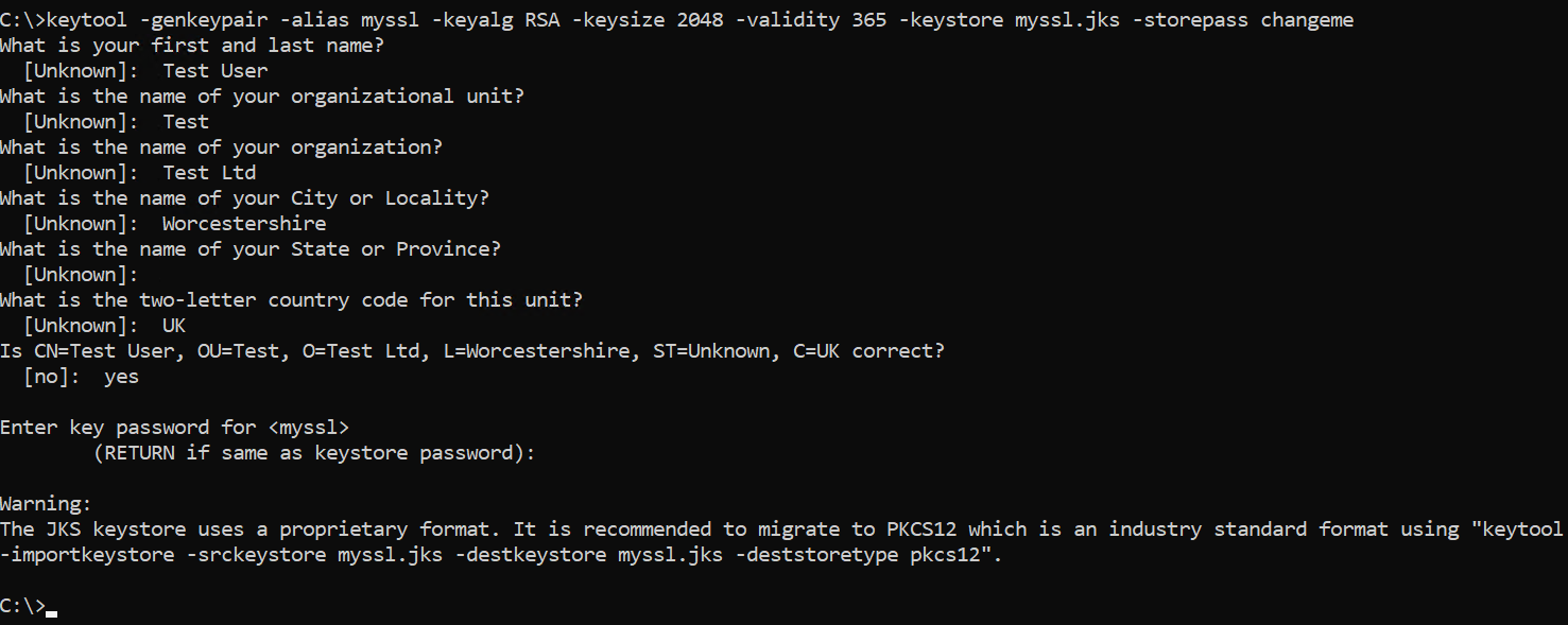 keytool -genkeypair -alias myssl -keyalg RSA -keysize 2048 -validity 365 -keystore myssl.jks -storepass changeme