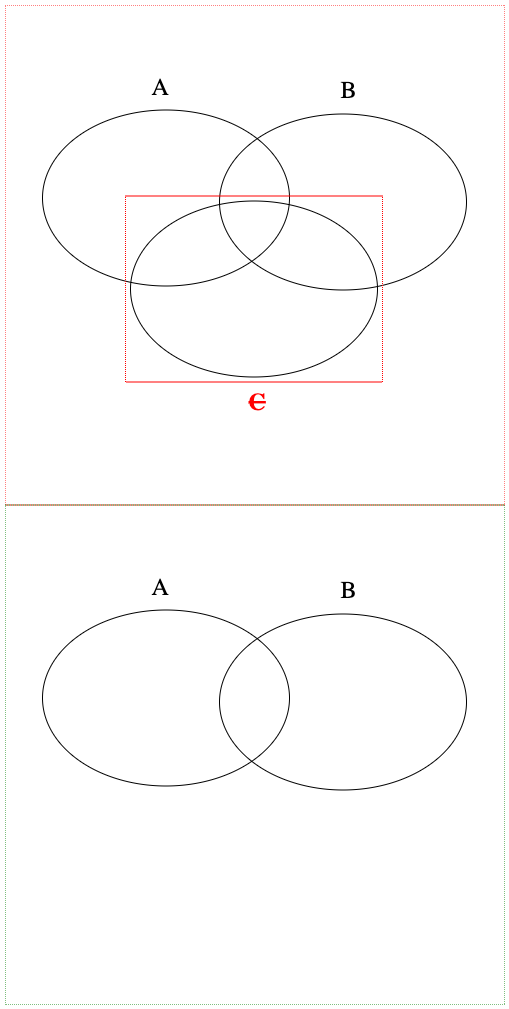 Representation of a Z-index change and a change to the element is shown in the following example. Changes other than Z-index take precedence, which means the element within both the A SVG (source) and the B SVG result (target) is given a respective red/green bounding box.