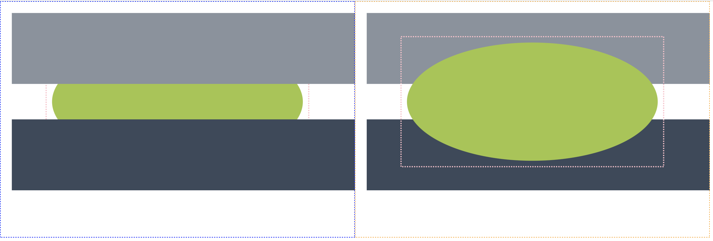 Adjacent SVG comparison is suited for SVG images with significant changes, the result showing the A and B SVG inputs adjacent to one another. A & B inputs are highlighted by default with red and green dashed outlines respectively, however these colours can be user defined. Adjacent results for SVG comparisons do not include highlighted change, ensuring correctly rendered SVGs and a side by side display of the SVG images to view difference.