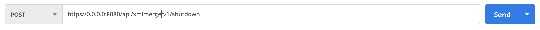 Use the POST command with this string: http://0.0.0.0:8080/api/xmlmerge/v1/shutdown